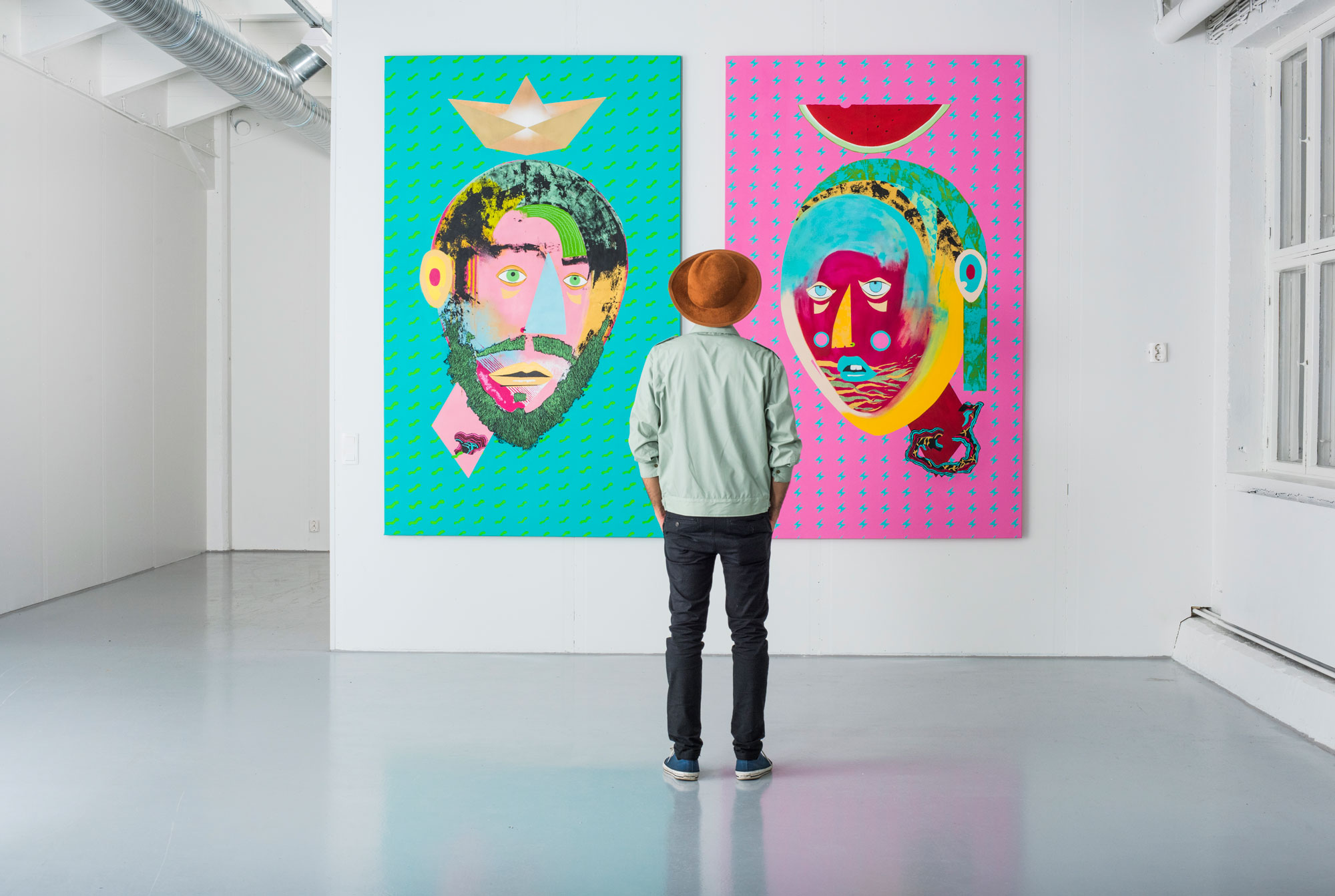 “Got a rare chance to visit Fabu's atelier today. The visionary artist is constantly looking for new techniques in mixed media. Be it collage, spray paint, aquarelle or tufting. Fabu is killin' it.