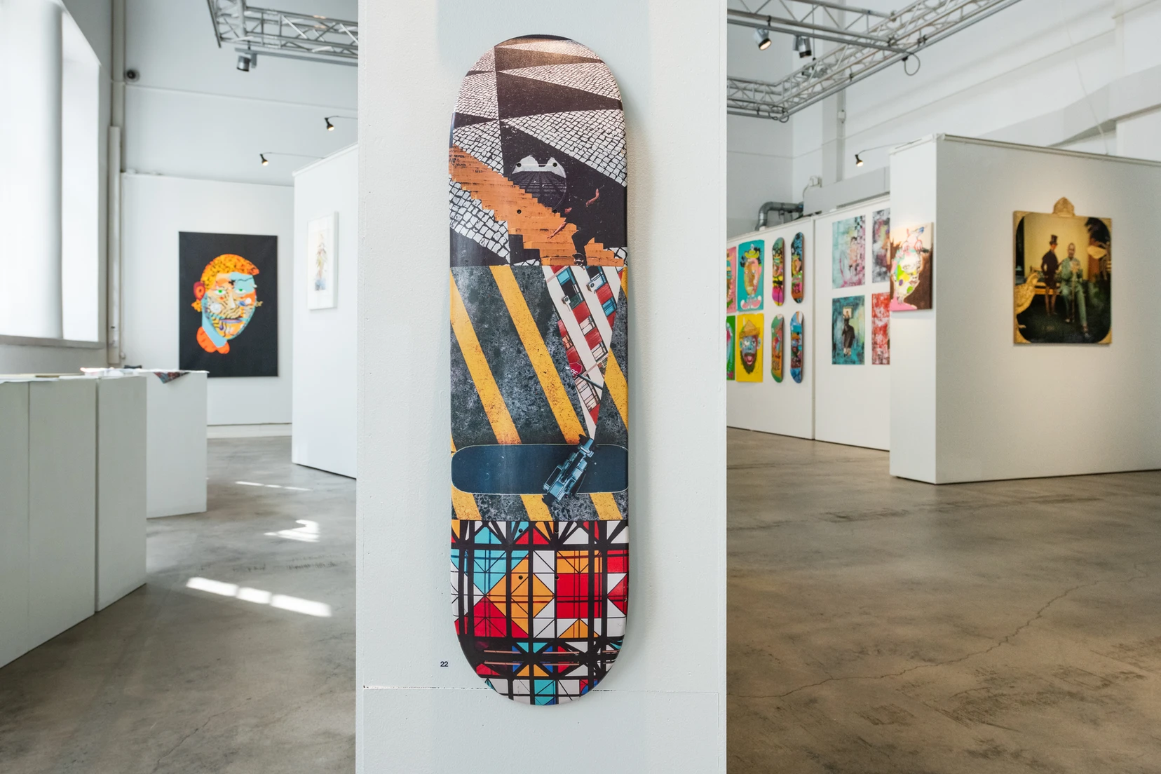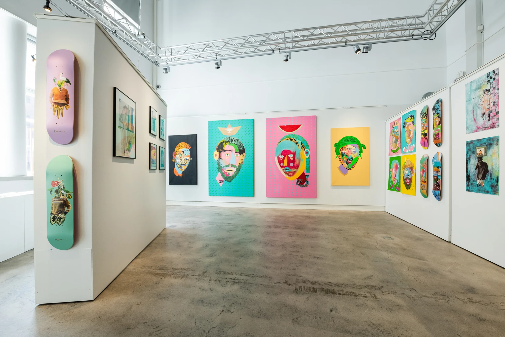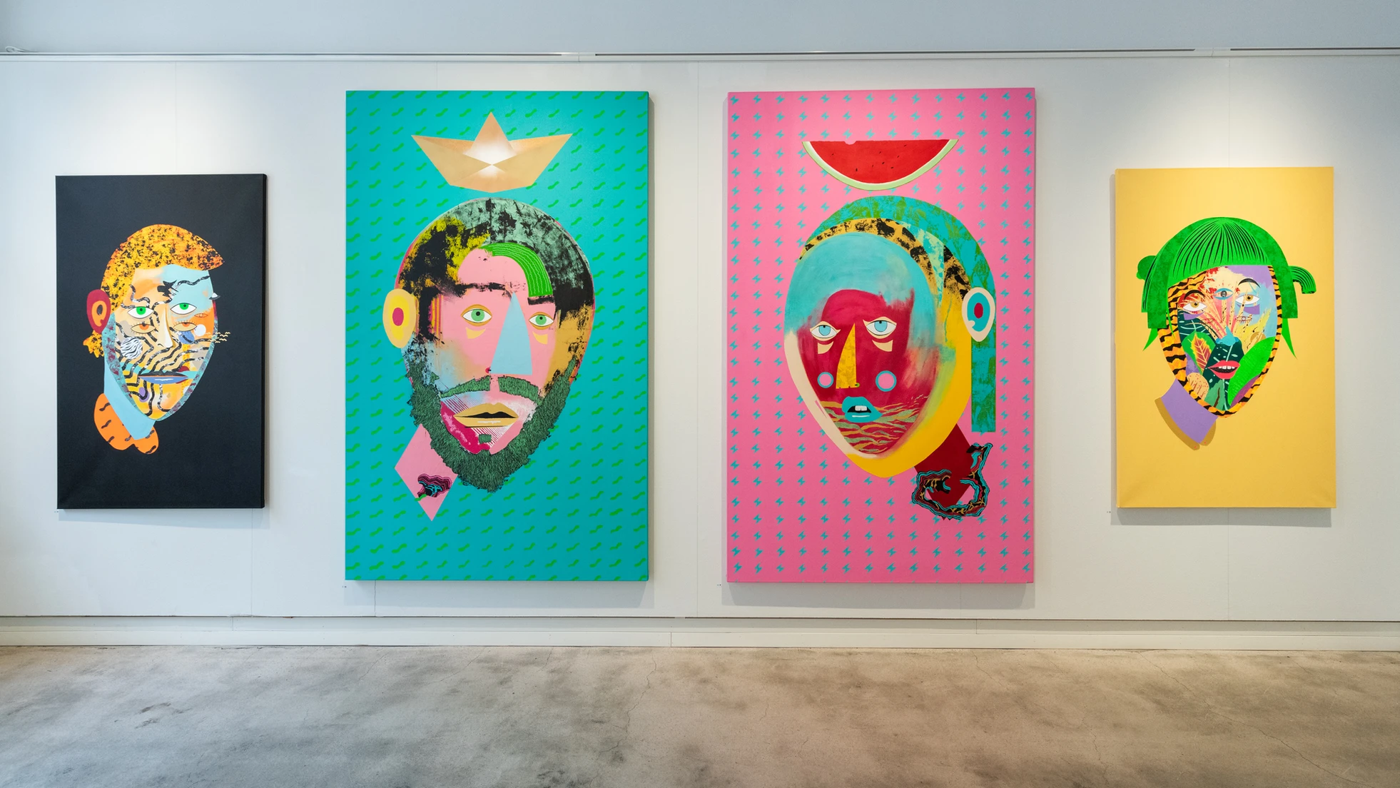 Alongside paintings from previous exhibitions, the show includes collaborative works developed with local businesses, as well as previously unseen sketches and studies. Rather than functioning as a conventional retrospective, Past Currents reveals the interconnected flow between Pires’ autonomous artistic production and his applied projects, highlighting recurring symbols, hybrid figures, and layered compositions that have shaped his visual language over time.