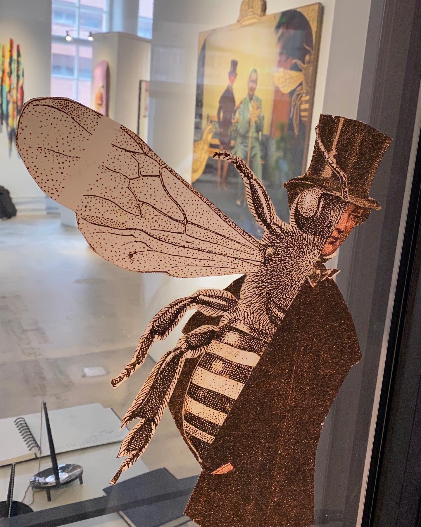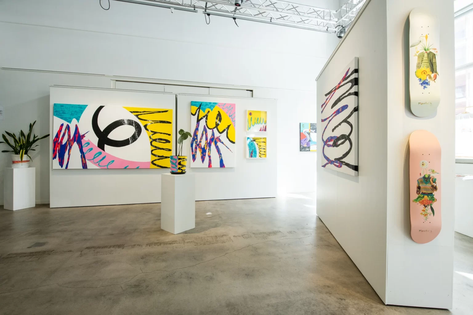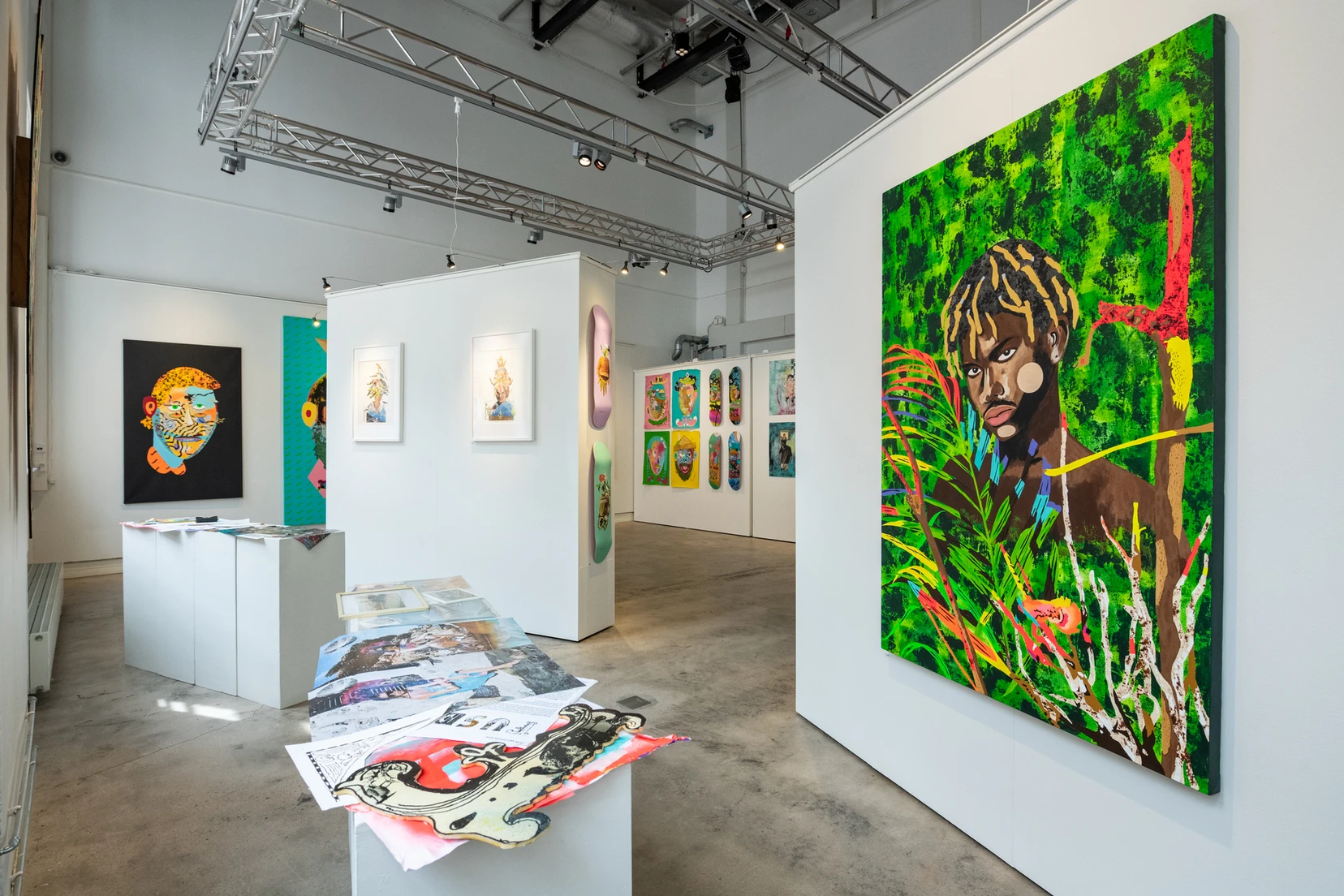 Alongside paintings from previous exhibitions, the show includes collaborative works developed with local businesses, as well as previously unseen sketches and studies. Rather than functioning as a conventional retrospective, Past Currents reveals the interconnected flow between Pires’ autonomous artistic production and his applied projects, highlighting recurring symbols, hybrid figures, and layered compositions that have shaped his visual language over time.