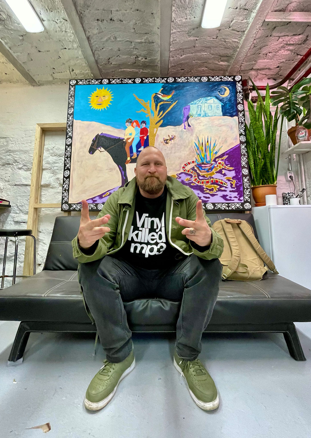 “Got a rare chance to visit Fabu’s atelier today. The visionary artist is constantly looking for new techniques in mixed media. Be it collage, spray paint, aquarelle or tufting. Fabu is killin’ it.